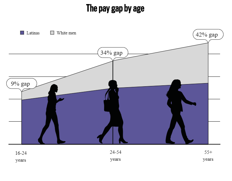 From age 16, Latinas are paid less than white boys the same age—and the gap only grows from there. Over a 40-year career, this wage gap can result in a loss exceeding $1.2 million in earnings for Latinas.